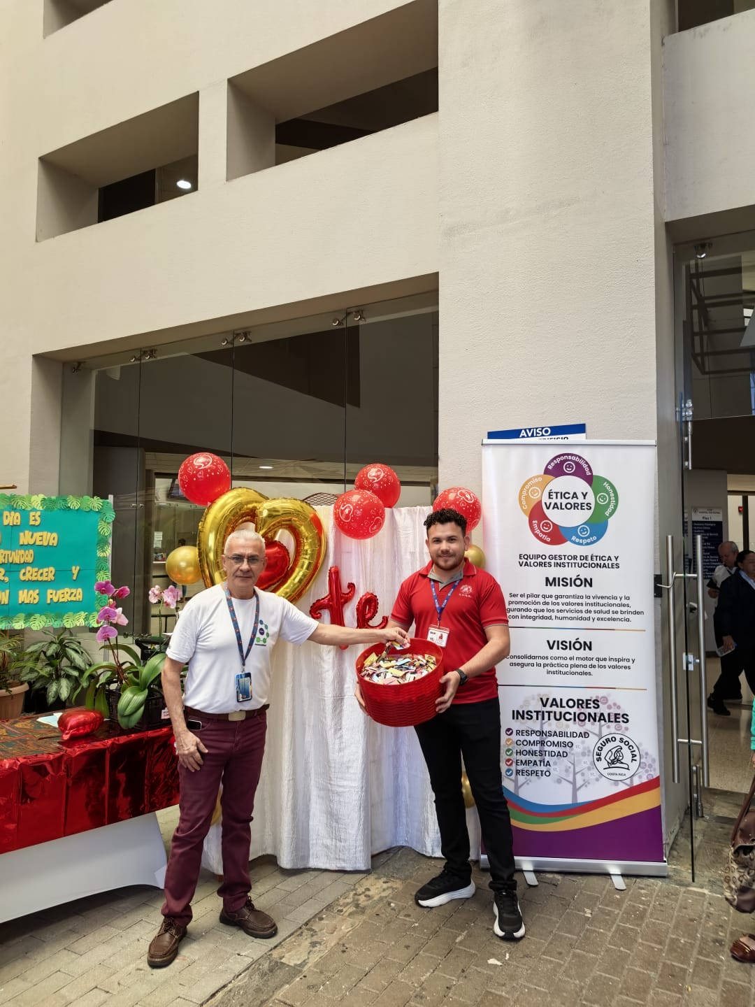 En el hospital San Vicente de Paúl, la Comisión de Salud Ocupacional organizó un buzón del agradecimiento para que el personal intercambie mensajes positivos, además de espacios para fotografías, la presencia de un personaje alusivo a la celebración y la entrega de detalles simbólicos al equipo de trabajo.